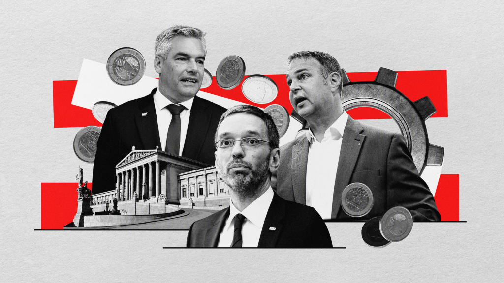 Um das Horrorszenario zu verhindern, schließt die ÖVP ein Bündnis mit ihren Erzfeinden SPÖ und den neoliberalen NEOS. Christian Stocker wird Kanzler einer Dreierkoalition … die im Nationalrat nur eine einzige Stimme Mehrheit hat. Acht Monate später, im November 2025, ist die Bilanz bereits katastrophal:
